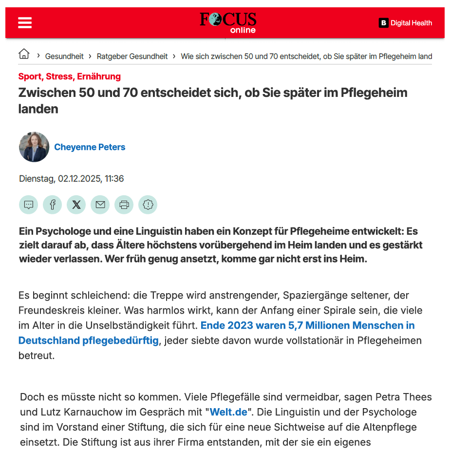 Pflege neu denken: Selbstständigkeit als Ziel im Alter.
